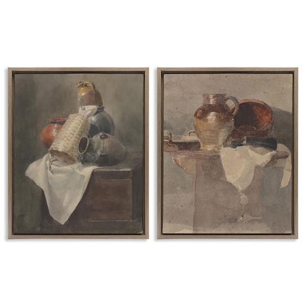 Vintage Sundries Still Lifes by Peter Dewint 2-Pieces Brown Floater Frame Food Graphic Art Print 31 in. x 25 in.