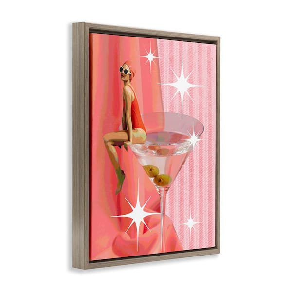 Vintage Swimmer on Drink by Daphne Polselli Brown Floater Frame Food Graphic Art Print 31 in. x 25 in.