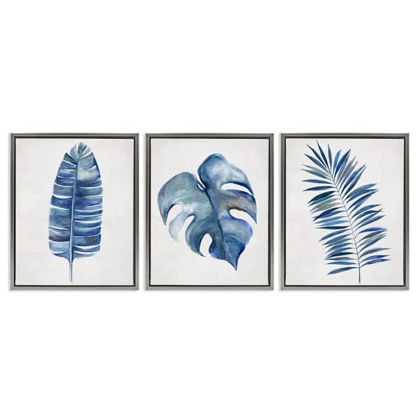 Vintage Tropical Leaves by Hannah Dawson 3 Pieces Gray Floater Frame Nature Graphic Art Print 31 in. x 25 in.