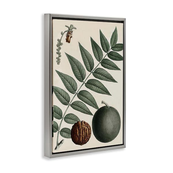 Vintage Walnut and Leaf by Graffi tee Studios Gray Floater Frame Nature Graphic Art Print 31 in. x 21 in.