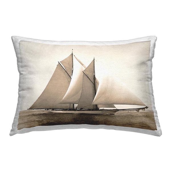 Vintage Yacht Seascape Outdoor Printed Throw Pillow by GraffiTee Studios