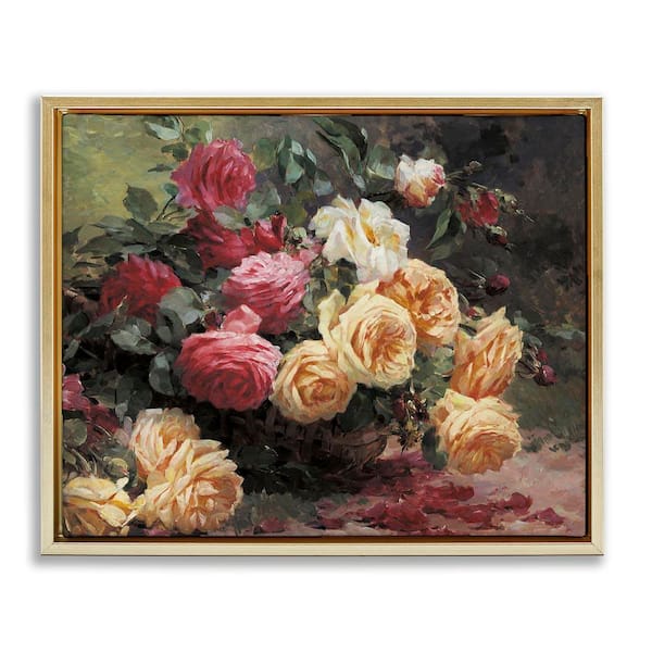 Vintages Rose Still Life by Albert-Tibulle Furcy de Lavault Gold Floater Frame Nature Graphic Art Print 25 in. x 31 in.