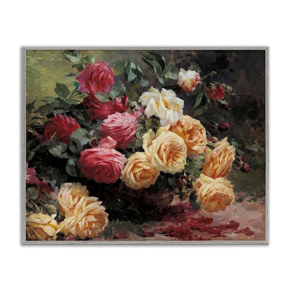 Vintages Roses Still Life by Albert-Tibulle Furcy de Lavault Gray Framed Nature Giclee Art Print 16 in. x 20 in.