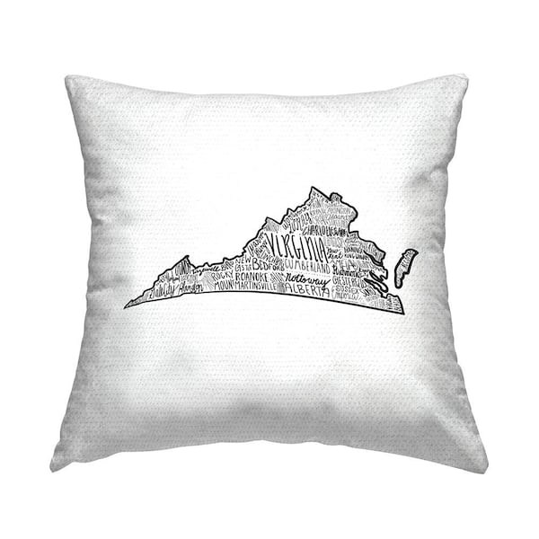 Virginia State Shape Typography Cities Map Black Square Outdoor Throw Pillow
