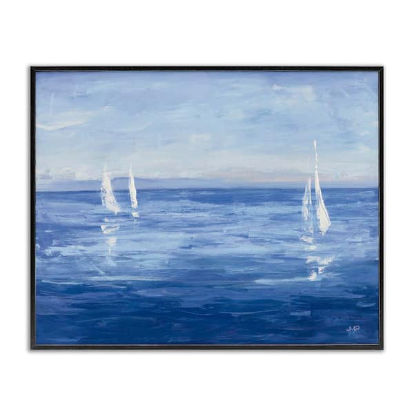 Vivid Boats Open Sail by Julia Purinton Black Framed Coastal Giclee Art Print 16 in. x 20 in.