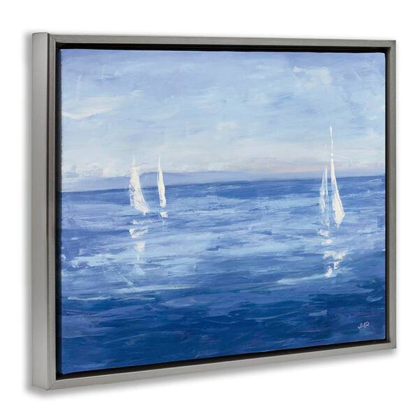 Vivid Boats Open Sail by Julia Purinton Gray Floater Frame Coastal Graphic Art Print 25 in. x 31 in.