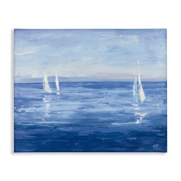 Vivid Boats Open Sail by Julia Purinton Unframed Coastal Graphic Art Print 30 in. x 40 in.