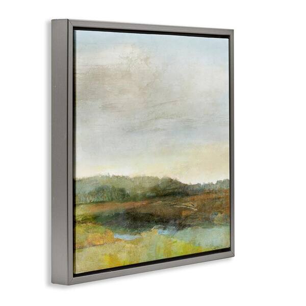 Warm Summer Meadow Hills by Suzanne Nicoll Gray Floater Frame Nature Graphic Art Print 18 in. x 18 in.