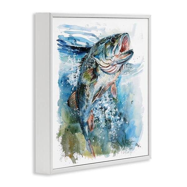 Water Splashing Fish by LSR Design Studio White Framed Animal Giclee Art Print 24 in. x 24 in.