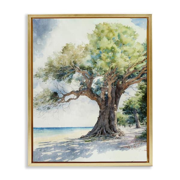 Watercolor Tree on Shore by Svetlana Aleynikova Gold Floater Frame Coastal Graphic Art Print 31 in. x 25 in.