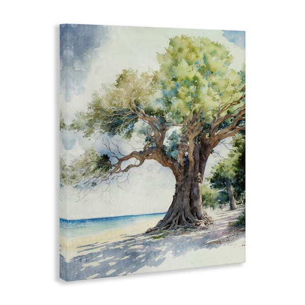 Watercolor Tree on Shore by Svetlana Aleynikova Unframed Coastal Graphic Art Print 20 in. x 16 in.