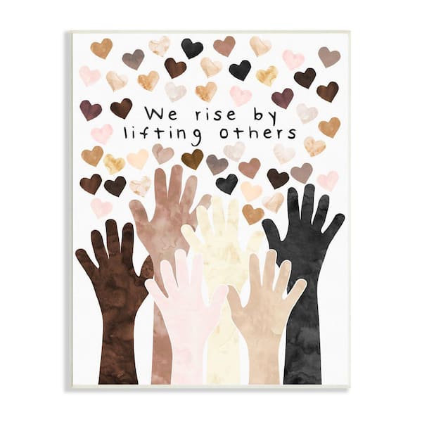 "We Rise by Lifting Others Quote Hands Hearts" by Erica Billups Unframed Country Wood Wall Art Print 10 in. x 15 in.