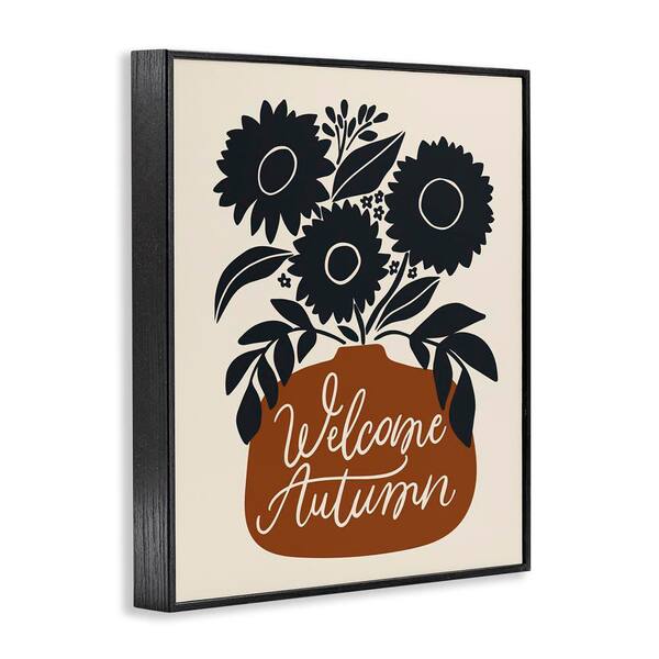 Welcome Autumn Earthy Blooms by Doodles. Ink. Black Framed Nature Giclee Art Print 14 in. x 11 in.