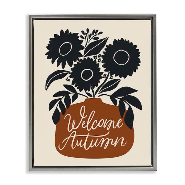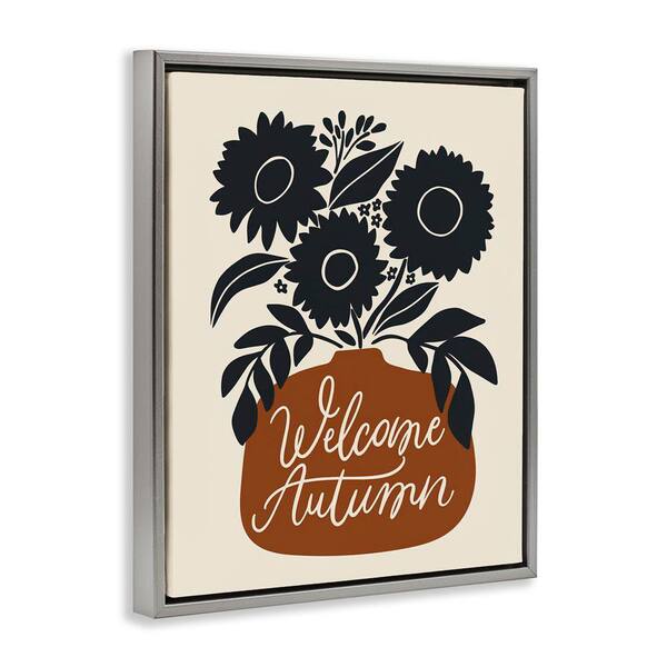 Welcome Autumn Earthy Blooms by Doodles. Ink. Gray Floater Frame Nature Graphic Art Print 21 in. x 17 in.