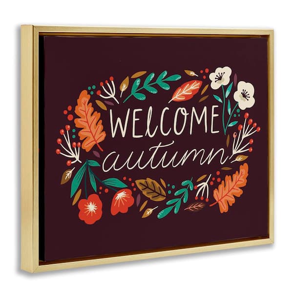 Welcome Autumn Fall Botanicals by Louise Allen Designs Gold Floater Frame Graphic Typography Art Print 31 in. x 25 in.