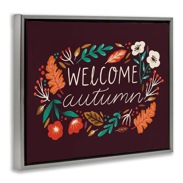 Welcome Autumn Fall Botanicals by Louise Allen Designs Gray Floater Frame Graphic Typography Art Print 21 in. x 17 in.