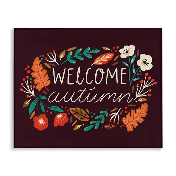 Welcome Autumn Fall Botanicals by Louise Allen Designs Unframed Graphic Typography Art Print 36 in. x 48 in.