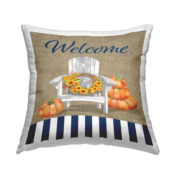 Welcome Autumn Pattern Brown Square Outdoor Throw Pillow