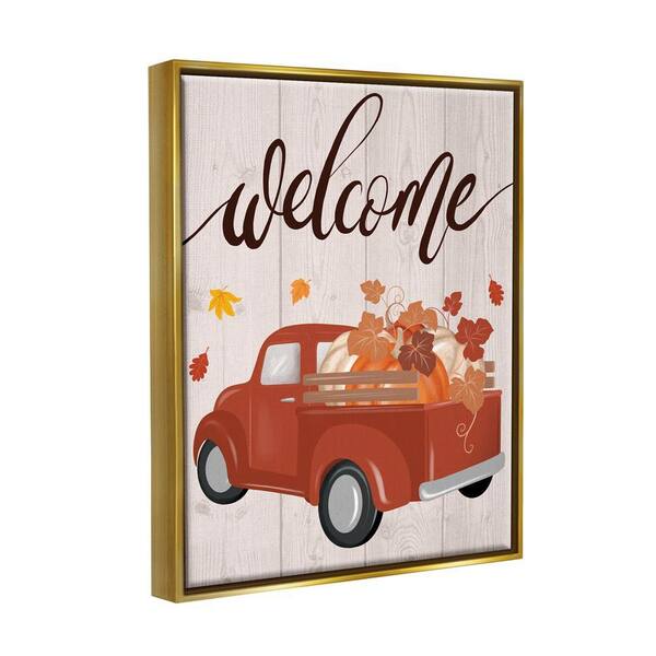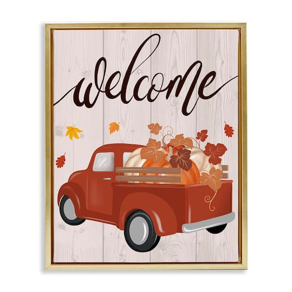 Welcome Country Pumpkin Truck by Jo Taylor Gold Floater Frame Graphic Typography Art Print 17 in. x 21 in.