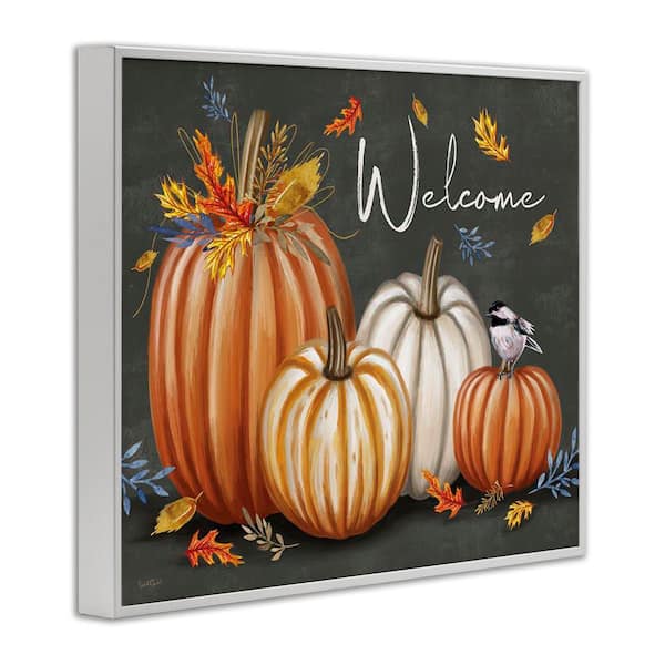 Welcome with Autumnal Pumpkins by Elizabeth Tyndall White Framed Typography Giclee Art Print 11 in. x 14 in.
