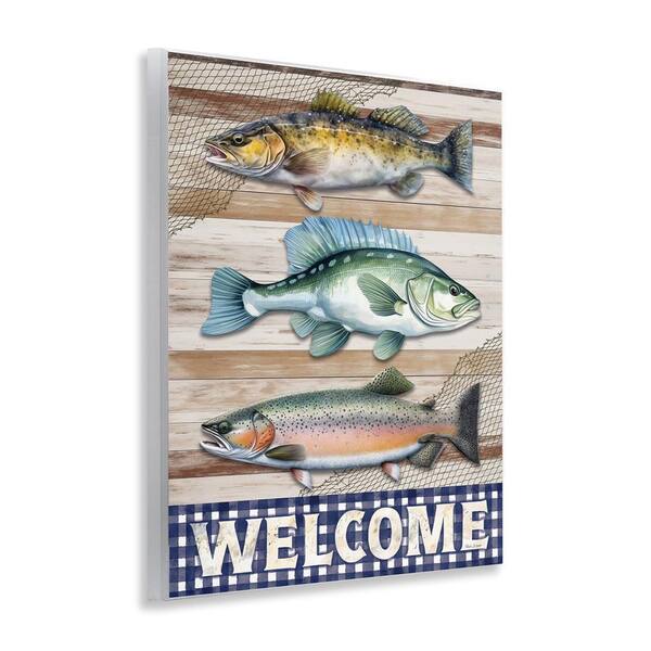 Welcome with Rustic Fish by Nicole DeCamp Unframed Animal Graphic Art Print 14 in. x 11 in.