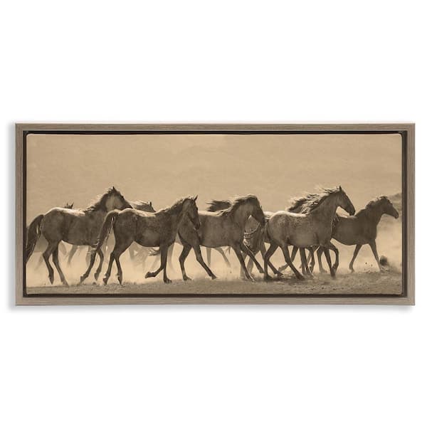 Western Horses Gallop by JG Studio Brown Floater Frame Animal Graphic Art Print 14 in. x 31 in.