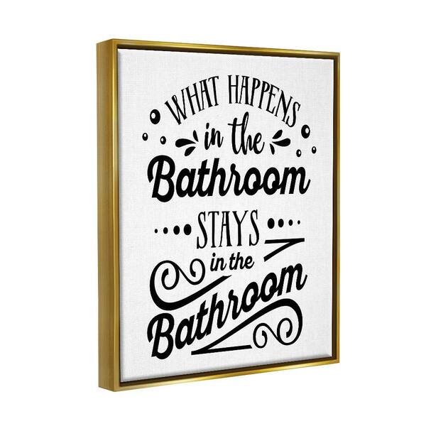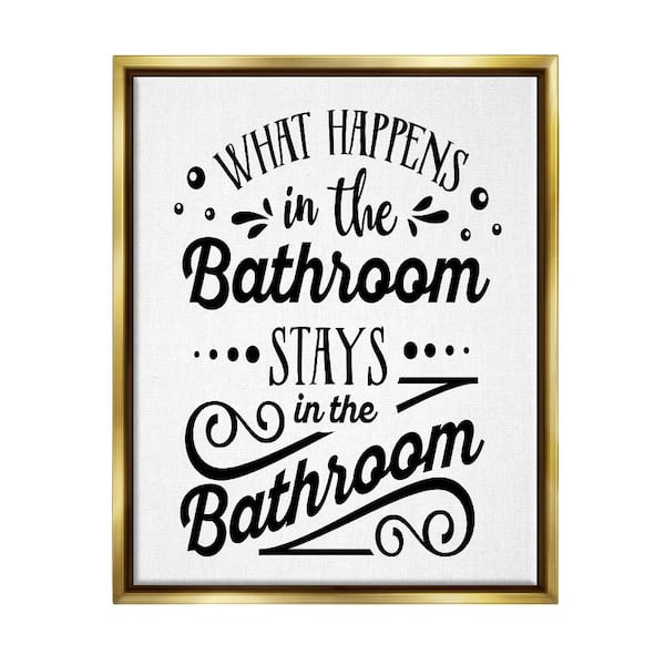 What Happens In Bathroom by Lettered and Lined 1-Piece Gold Floater Frame Typography Graphic Art Print 17 in. x 21 in.