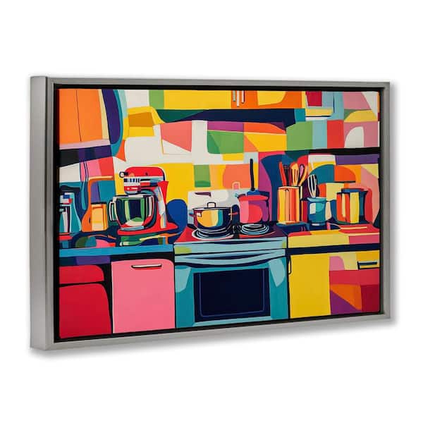Whimsical Hued Kitchen by LSR Design Studio Gray Floater Frame Home Graphic Art Print 21 in. x 31 in.