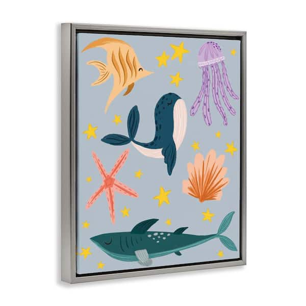 Whimsical Marine Creatures by Isabela Schielke Gray Floater Frame Animal Graphic Art Print 21 in. x 17 in.
