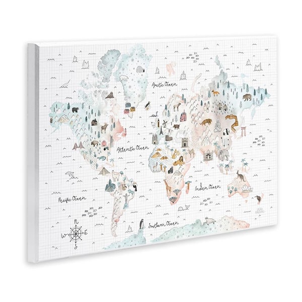 Whimsical World Traveler Map by Laura Marshall Unframed Animal Graphic Art Print 13 in. x 19 in.