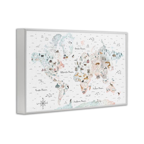 Whimsical World Traveler Map by Laura Marshall White Framed Animal Giclee Art Print 20 in. x 30 in.