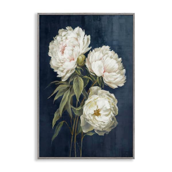 White Blossoms on Blue by Alex Black Gray framed Nature Giclee Art Print 18 in. x 12 in.