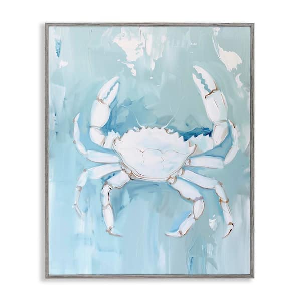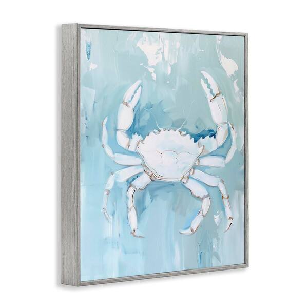 White Coastal Crab by Arlington Prints Gray Framed Animal Giclee Art Print 30 in. x 24 in.
