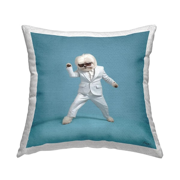 White Dog Dancing Blue Square Outdoor Throw Pillow