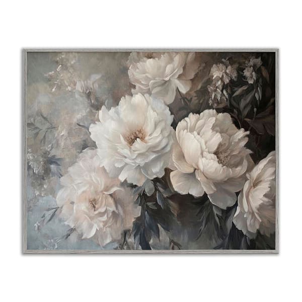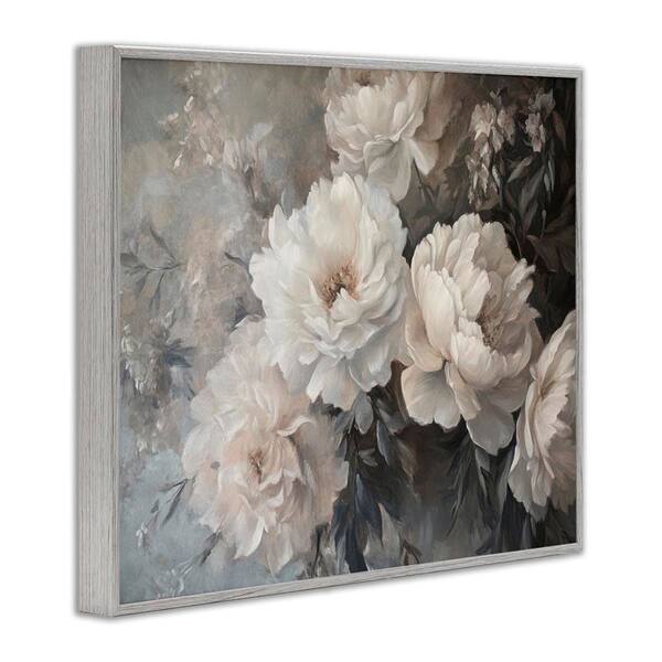 White Florals Vintage by Petal Prints Design Gray Framed Nature Giclee Art Print 24 in. x 30 in.