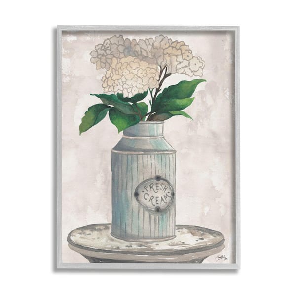 White Hydrangea Flowers Country Tin Painting By Elizabeth Medley Framed Print Nature Texturized Art 24 in. x 30 in.