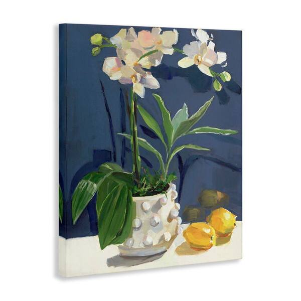 White Orchids & Lemons by Jenny Westenhofer Unframed Nature Graphic Art Print 48 in. x 36 in.