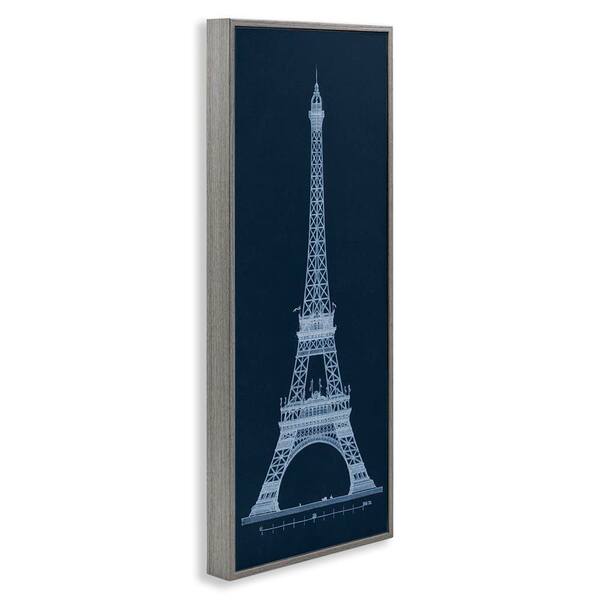 White Parisian Tower on Blue by Phillipa Katz Gray Framed Architecture Giclee Art Print 24 in. x 10 in.