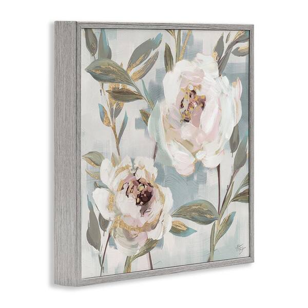 White Peony Duo by Nina Blue Gray Framed Nature Giclee Art Print 17 in. x 17 in.