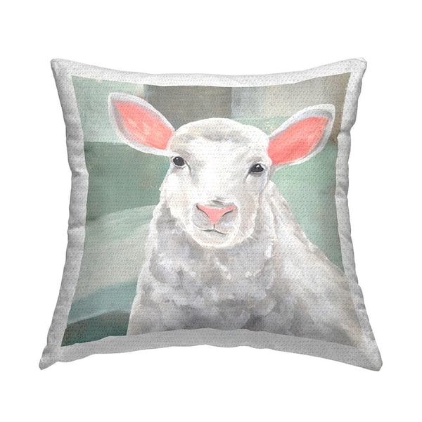 White Sheep Portrait Green Square Outdoor Throw Pillow
