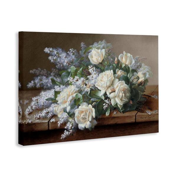 White Vintage Roses by Raoul De Longpre Unframed Nature Graphic Art Print 20 in. x 30 in.