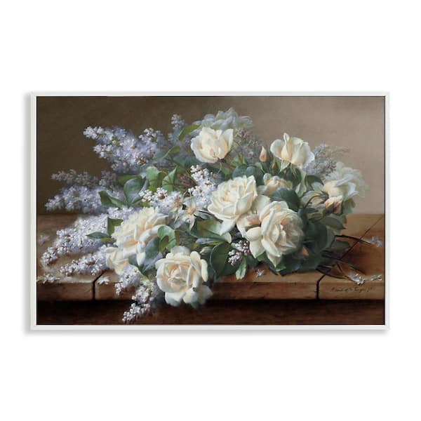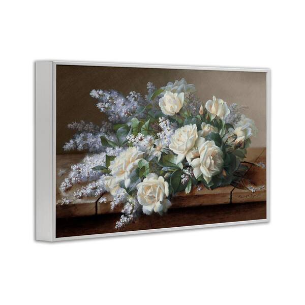 White Vintage Roses by Raoul De Longpre White Framed Nature Giclee Art Print 16 in. x 24 in.