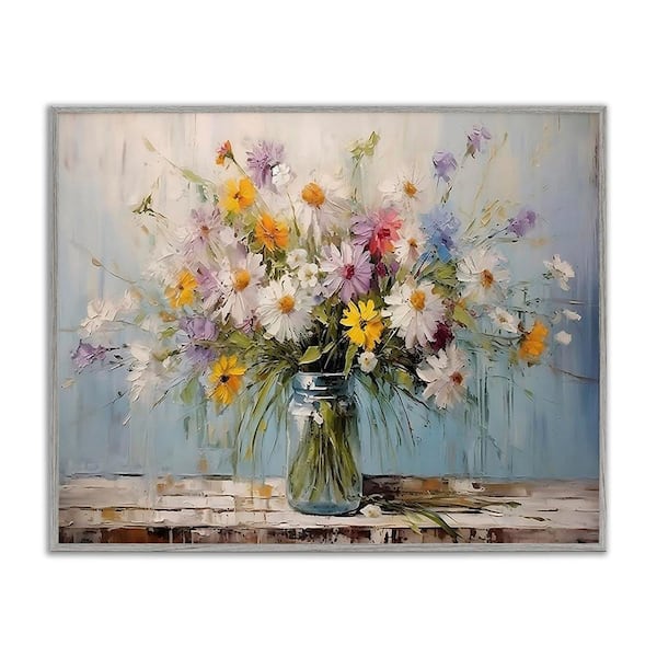 Wildflower Bouquet in Jar by Franklyn Gregory Gray Framed Nature Giclee Art Print 11 in. x 14 in.