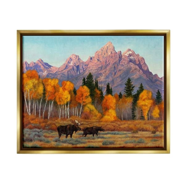 Wildlife with Autumn Scenery by Cliff Rossberg Gold Floater Frame Graphic Nature Art Print 31 in. x 25 in.