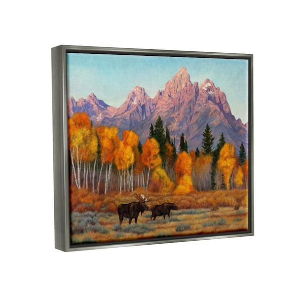 Wildlife with Autumn Scenery by Cliff Rossberg Gray Floater Frame Graphic Nature Art Print 31 in. x 25 in.