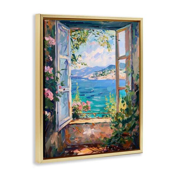 Window Sea View by LSR Design Studio Gold Floater Frame Nature Graphic Art Print 31 in. x 25 in.