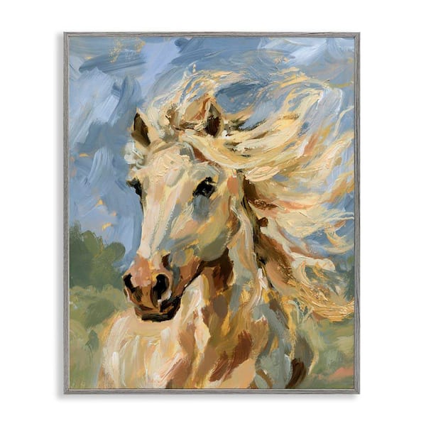 Windswept Horse Mane by Victoria Barnes Gray Framed Animal Giclee Art Print 20 in. x 16 in.