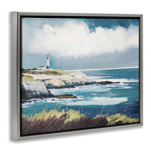 Windswept Lighthouse Grasses by Svetlana Aleynikova Gray Floater Frame Coastal Graphic Art Print 25 in. x 31 in.