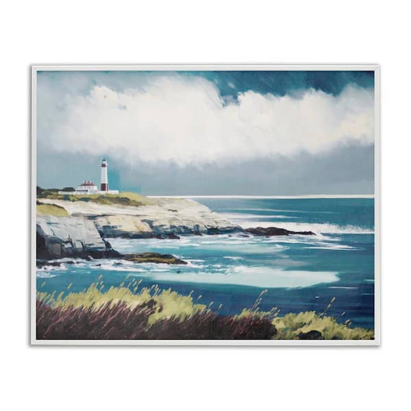 Windswept Lighthouse Grasses by Svetlana Aleynikova White Framed Coastal Giclee Art Print 11 in. x 14 in.