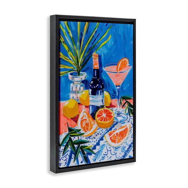 Wine Bottle & Citrus by LSR Design Studio Black Floater Frame Food Graphic Art Print 25 in. x 17 in.